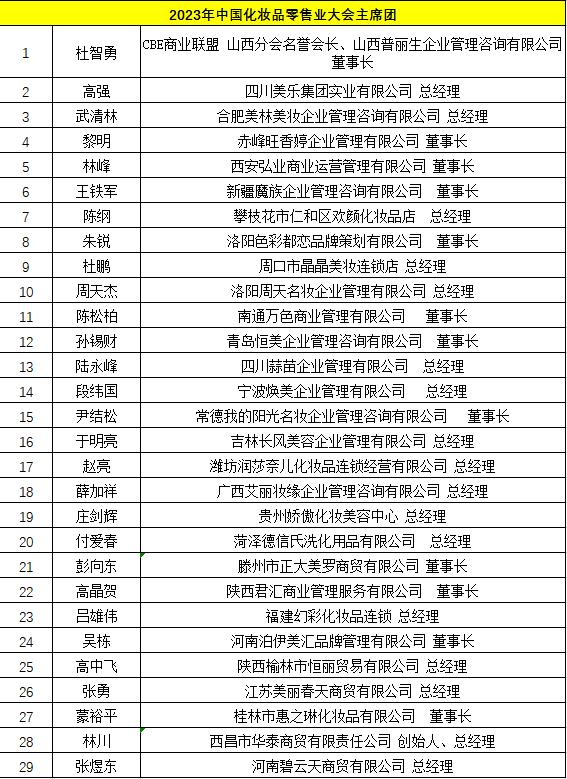 中国化妆品零售业大会重磅主席团名单亮相——